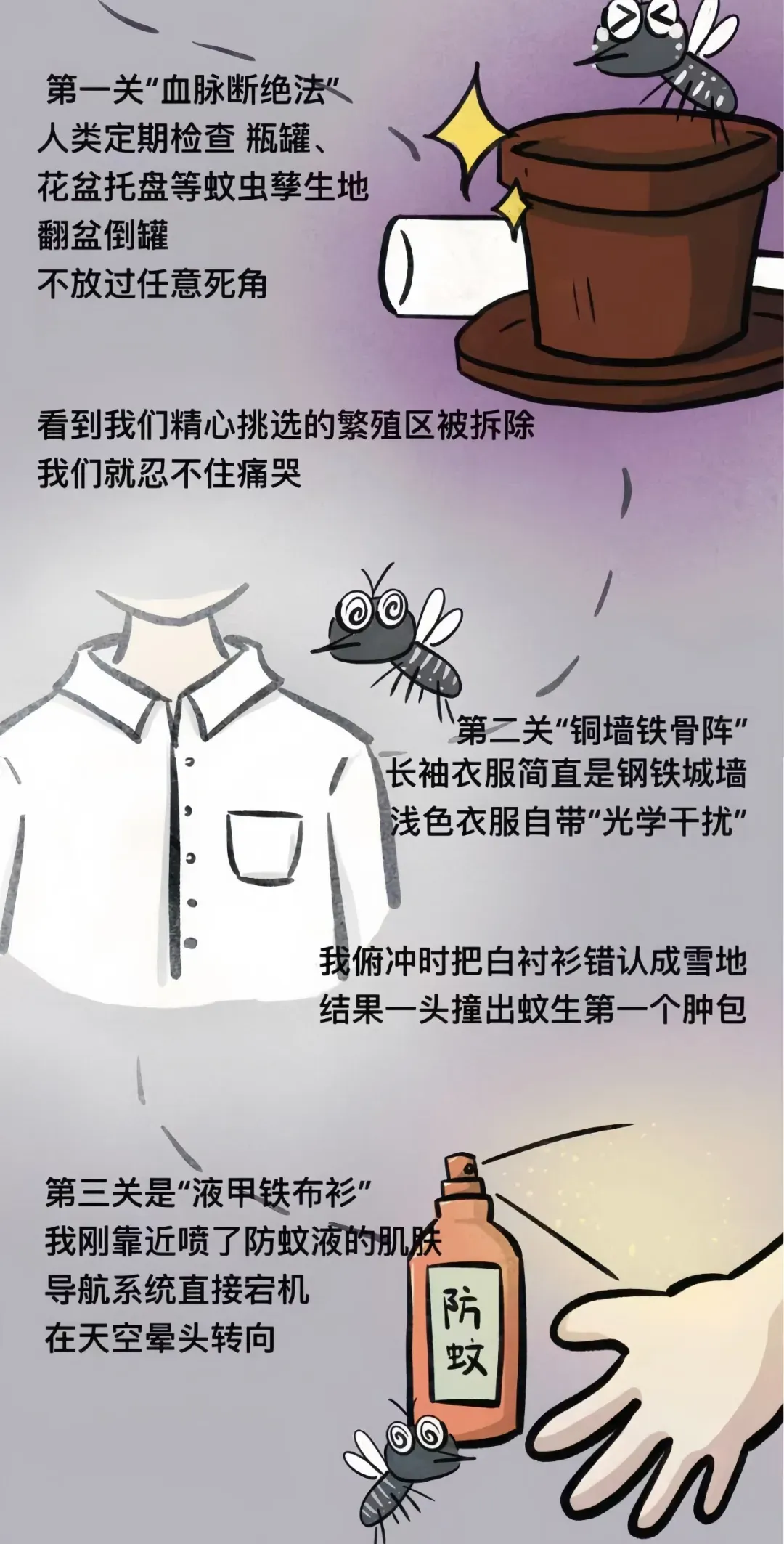 家居门窗争取安装纱门纱窗,防止蚊虫进入室内。睡觉时使用蚊帐,有效隔绝蚊虫。外出时穿长袖衣裤,或裸露皮肤喷涂有效驱蚊剂,减少暴露被叮咬风险。伊蚊活动高峰一般在日出后2小时以内和日落前2小时以内,外出活动时尽量避开蚊虫活动高峰期,尽量减少在户外草丛等蚊子多的地方停留时间。
